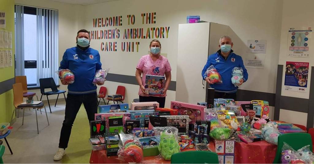 Continuing the group’s excellent charity work, John Wylie and Stephen MacCrimmon represented us this week in another visit to the children’s ward at Victoria hospital. The purpose of the visit was to deliver toys and gifts purchased courtesy of donations from the Sunday night group. Previous donations from the group have been made to the Cottage Family Centre, the Kingdom Kids Toy Appeal and the children’s ward.